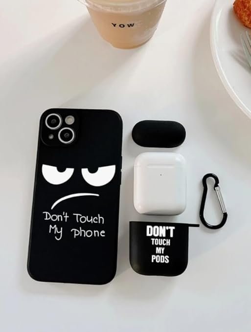 1pc Cartoon Face Phone Case & 1pc Case Compatible with Airpods – Don’t Touch Theme